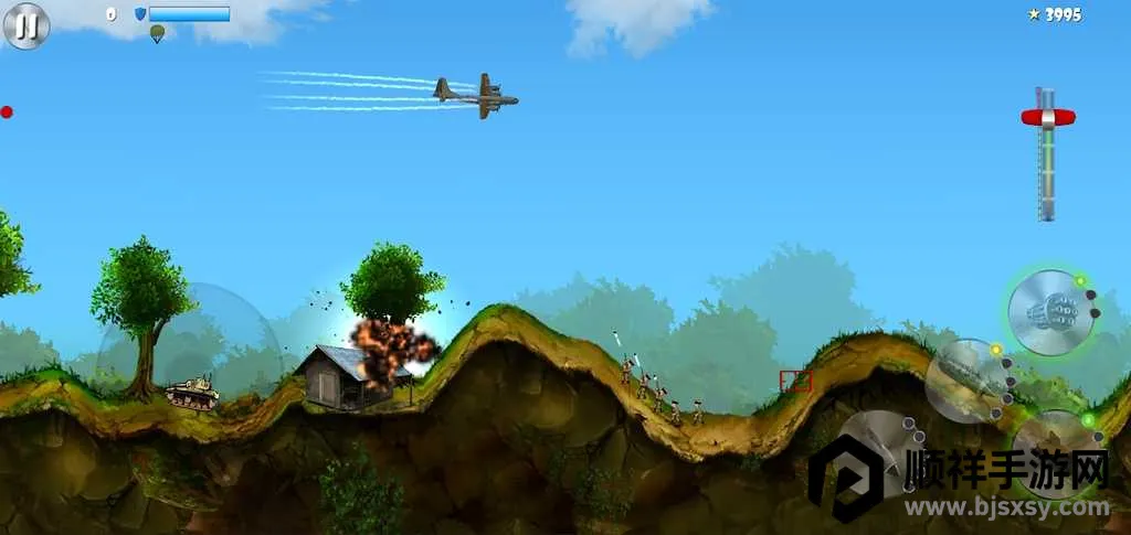 地毯式轰炸3是款有趣炸弹游戏,类似胭脂游戏模式需连过3关保进度,升级在关卡间进行。玩法多样,与士兵、坦克等多种敌人作战,多种地形可选,能收集道具升级飞机,随机地图、可破坏地形带来无尽乐趣。