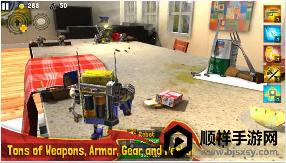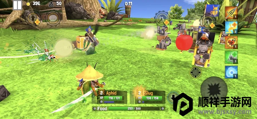 3、玩法丰富模式多样:有任务、无尽、战役三大单机模式,支持本地与全球多人对战。玩家既能在微观战场体验热血战斗,又要收集场景中的食物与废料,加固巢穴建造炮塔,经营基地,还能升级英雄,装备武器和盔甲,玩法丰富多样。
