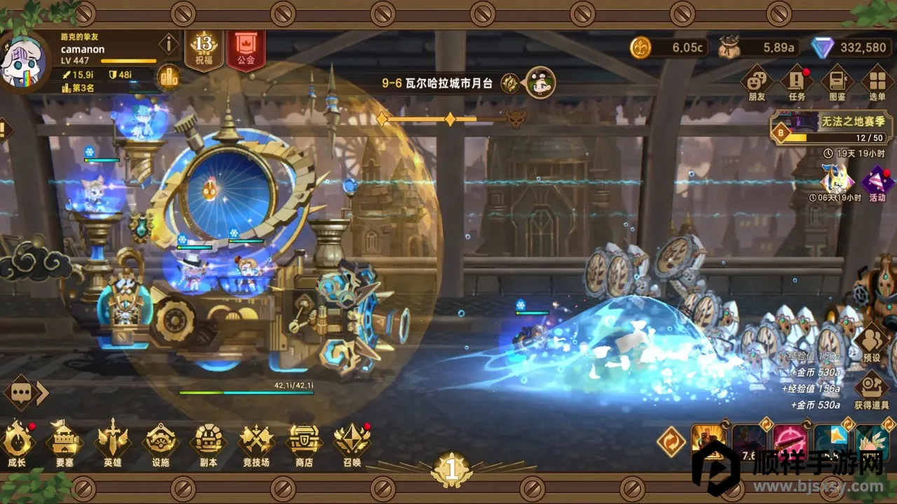4. 独特自动战斗系统:告别繁琐操作,体验极致放置乐趣。移动城堡自动前行时战斗同步开启,智能自动战斗机制和简洁操作设计,实现全天候无限挂机持续变强。