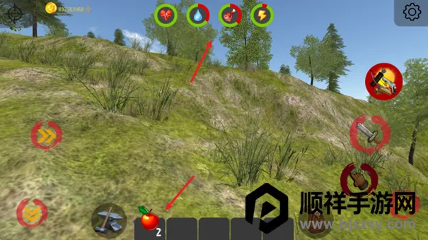 2、点击快捷栏中的食物,可以为我们补充能量。