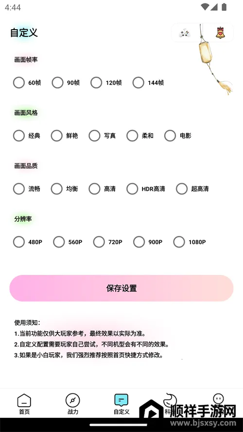 2、自定义画质设置:用户能依据喜好和设备性能,自由调节游戏画质参数,涵盖分辨率、纹理质量、光影效果等,获取最佳游戏画质性能。