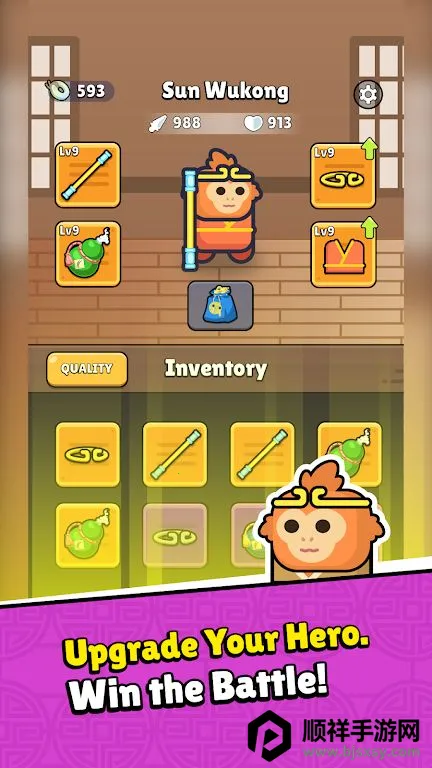 4. 趣味策略玩法:作为放置类角色扮演射击游戏,有丰富元设定,在各个关卡不断尝试,找到最适合自己的策略,化身孙悟空召集英雄击退敌人,探索大陆、消灭敌人,还能定制英雄。