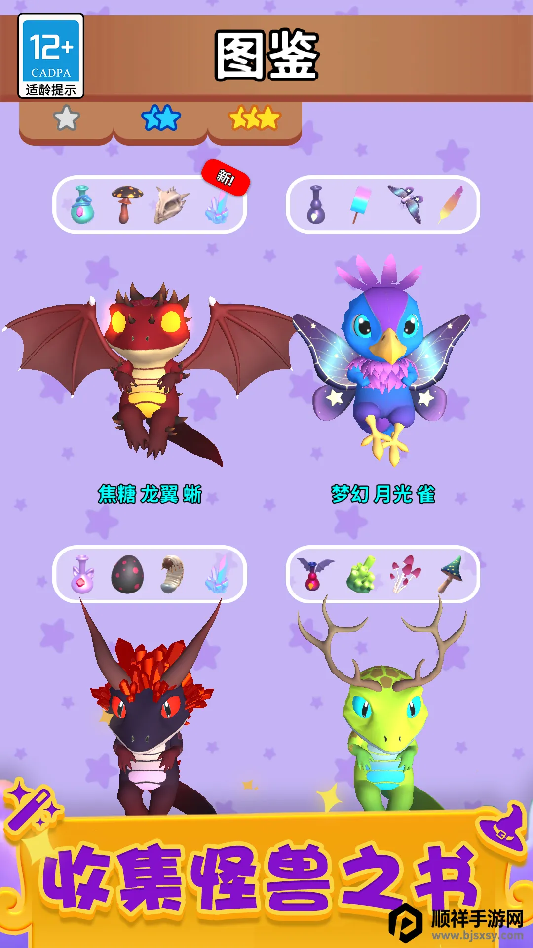 3. 拥有多种玩点,如收集稀有材料、创造神秘怪兽、派遣怪兽探险、发掘宝藏等。