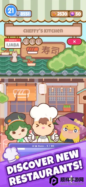 4. 玩法自由,能在不同场景制作美食,通过休闲放置随时赚金币,还可不断扩展业务开分店。