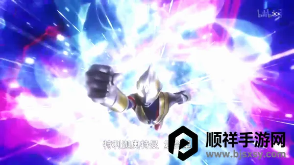 6、接着游戏为自动播放特利迦奥特曼变身的过程动画,以及变身音效;