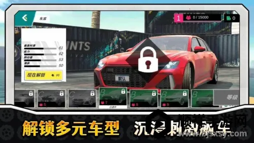 1、进入游戏后,仔细浏览车库系统中的每辆赛车性能数据,分析并选择适合当前赛道的赛车参加比赛。