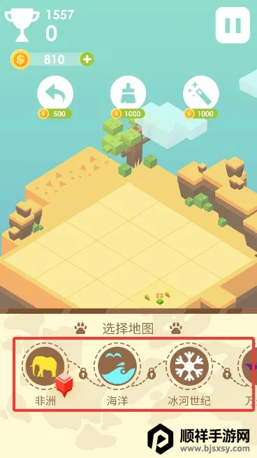 1、初次进入游戏界面后首先选择心仪的地图场景,确认后开启合成挑战之旅。