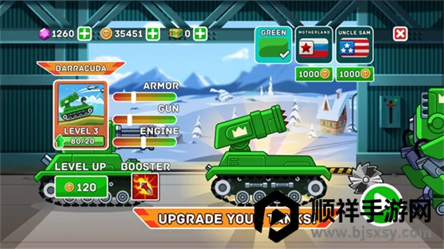 2、多类型坦克与属性强化:拥有多种坦克,属性可强化,助力战场对抗。
