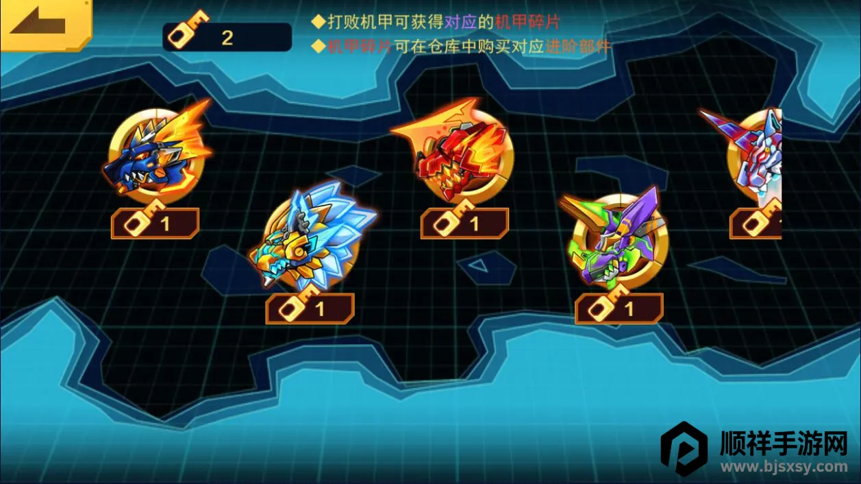 1、拥有丰富多样的机甲,如白炎暴龙、月神赛赛等,每种机甲还能添加部件提升属性。