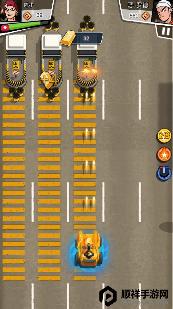 2. 操作简单,左右移动射击消灭阻挡赛车,轻松上手。