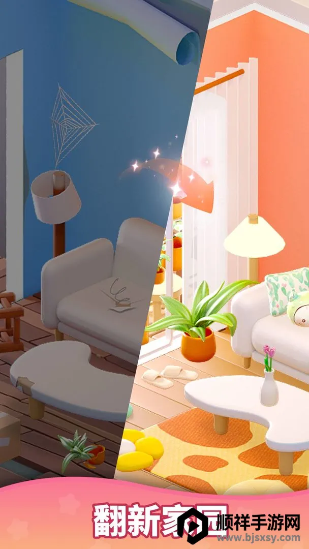 2. 自由装饰:合并相同对象获工具,解锁升级家具,翻新粉刷房屋豪宅。