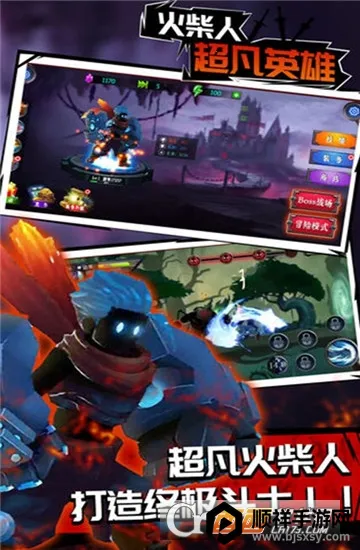 火柴人超凡英雄是一款超热血刺激的横版动作冒险闯关游戏。它以经典火柴人题材展开,3D卡通暗黑系画面,搭配炫酷动作模式,带来激烈炫酷视觉冲击。玩法简单,玩家扮演超凡勇者与妖魔战斗,通过秀操作、放技能打败黑暗势力,收集装备强化升级。游戏特色众多,有多种职业英雄、精彩关卡和强大boss。战斗模式奇特,大招震撼,特效感强。能让玩家体验到不同技能招式的流畅快感,绝对值得一玩。
