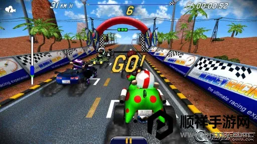 猴子卡丁车手游是一款赛车竞速游戏,玩家驾驶卡丁车与猴子们在绚丽赛道追逐。操作简单易上手,通过点击屏幕控制。有80多条赛道、多个场景关卡,可随机换造型,还有多种道具和特色赛道,玩起来乐趣十足。