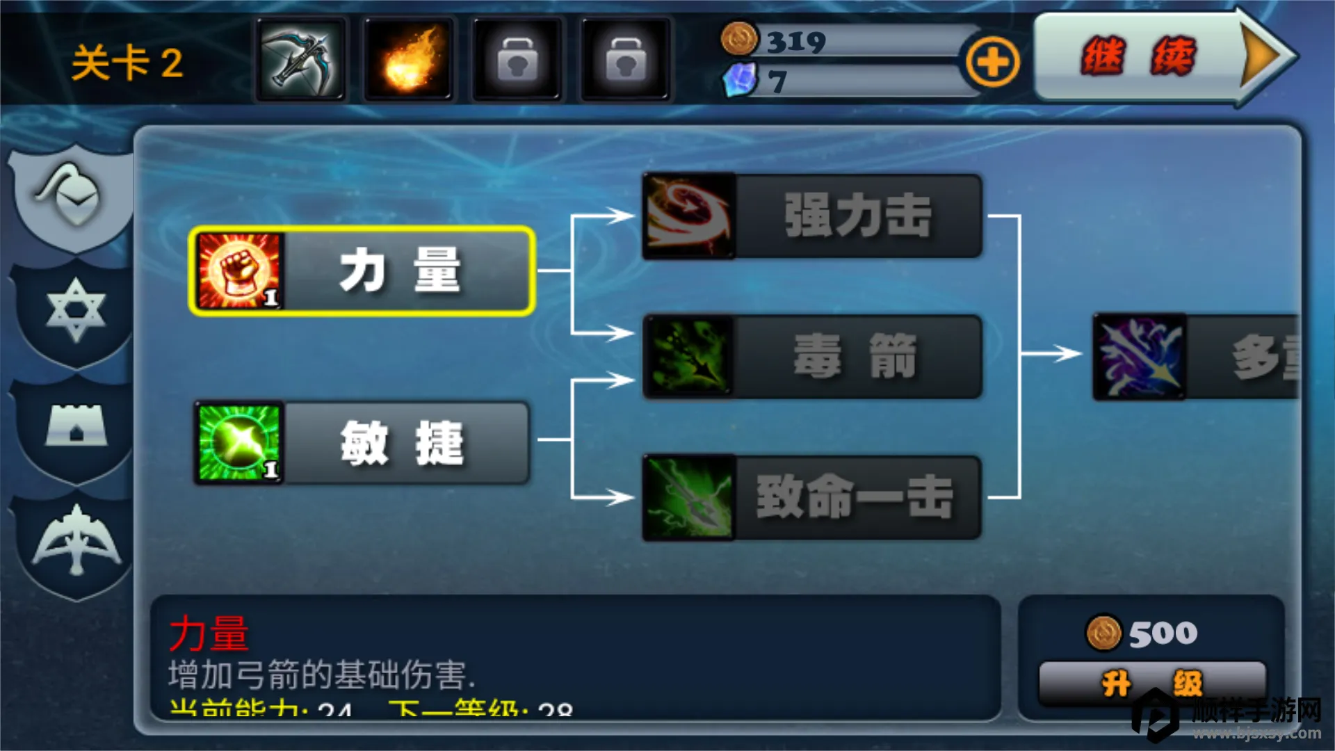 4、技能系统超酷炫:设定了丰富的技能系统,可任意释放酷炫技能击杀入侵怪物,搜集魔法宝石还能增加法术,提升战斗力。