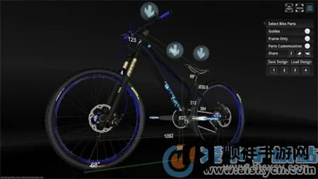 它的功能超丰富,能更改组件,在3D模式和增强现实模式中切换,还能改变颜色、框的大小、叉旅行、车轮尺寸等。叉和帧悬架行程有示范,尺寸超真实。你可以保存设计并分享给社交网络的朋友。
