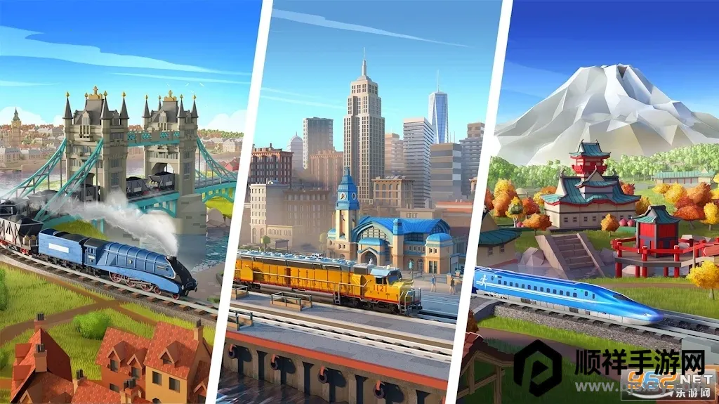 3. 随着游戏的进行能够解锁各种铁路路线并设置各种火车运转在轨道上。解锁路线,自由运转