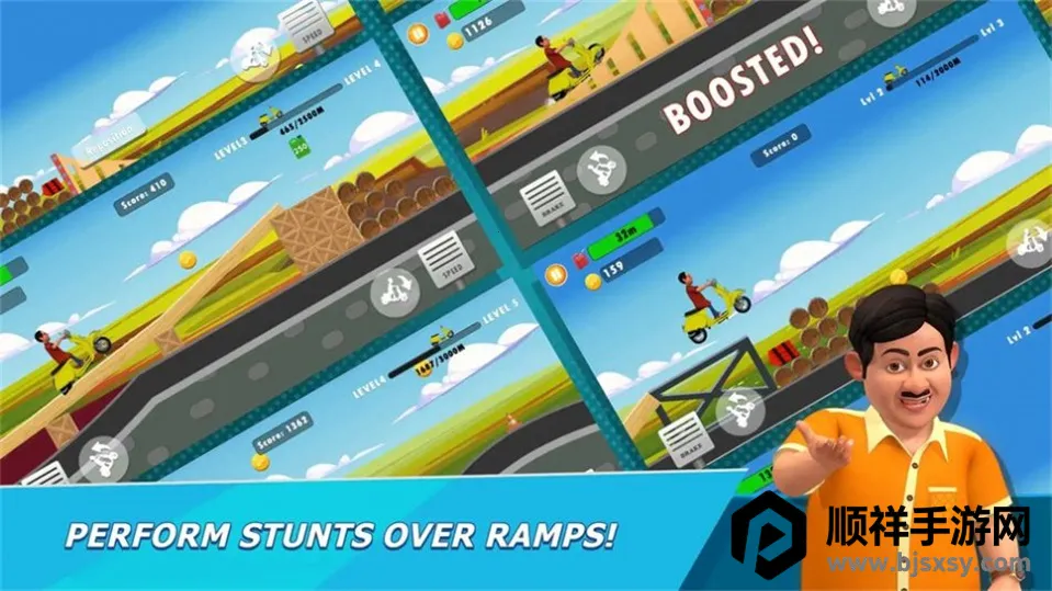 3. 提供多种滑板车和角色选择,赛道设计富有创意与挑战性。