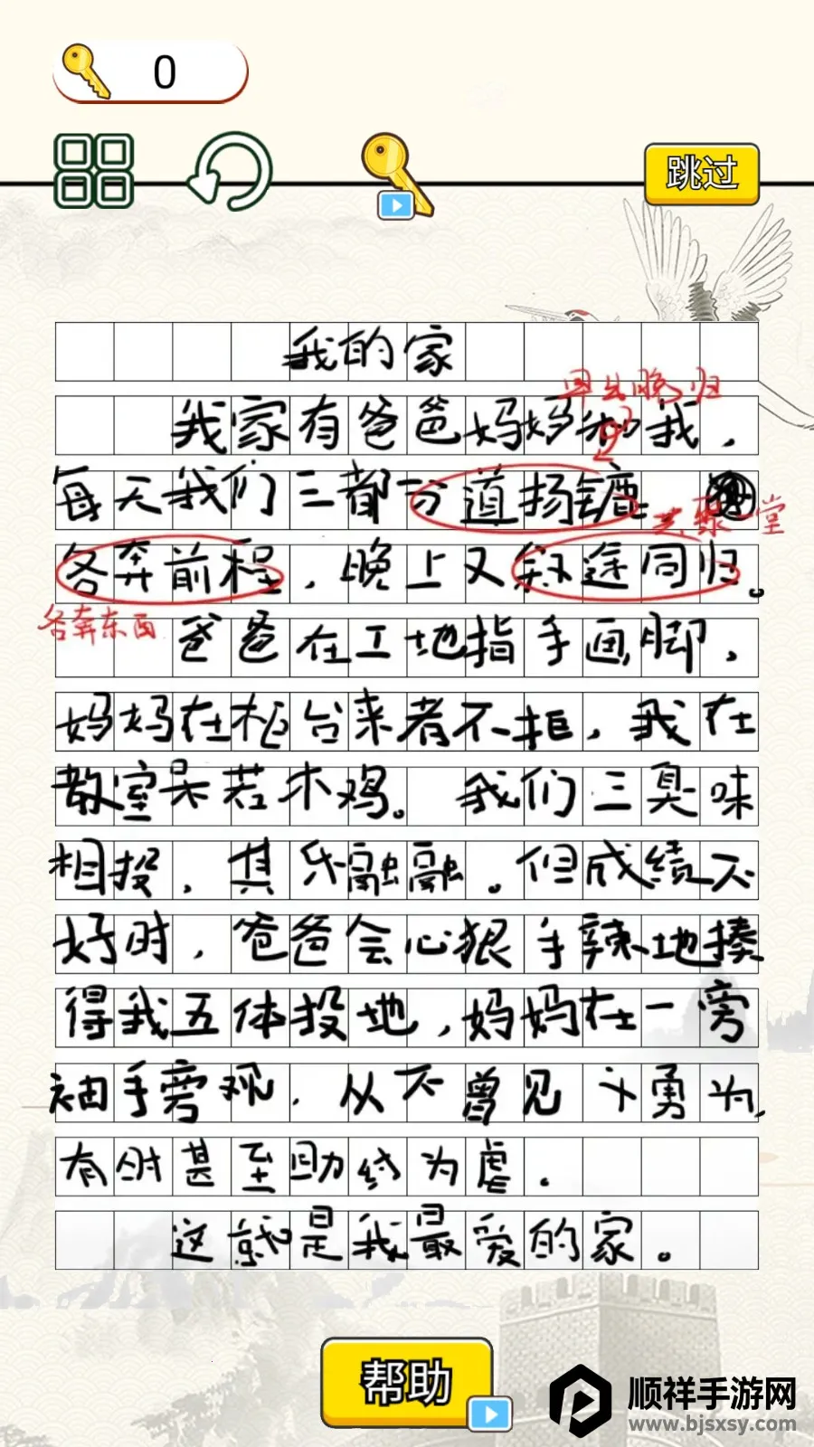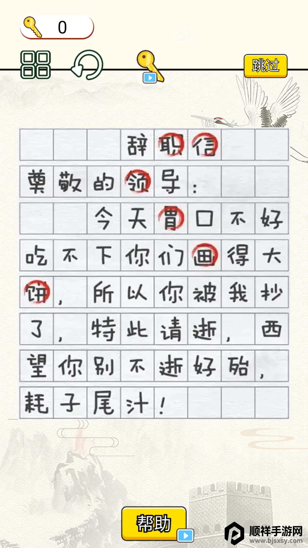 游戏里有各种精美的图片,每关都藏着细微的错别字,涵盖错别字、成语误用、语法混乱及标点错位等多维度错误类型。部分错误还得结合上下文推理判断,培养阅读与逻辑能力。特定关卡有历史典故与文学引用彩蛋,成功修正可解锁文化背景说明。