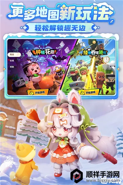 - 地图玩法不断创新,如怪兽吞噬进化、种植花园焕新等。还有多种活动,完成任务可领取丰厚奖励。
