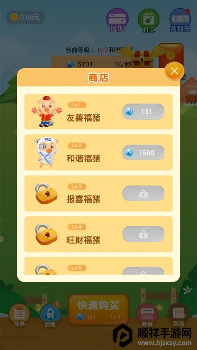 3、玩法丰富有趣,有签到有奖、升级奖励、趣味任务、抽奖惊喜、幸运刮刮卡等多种玩法,让玩家在养猪过程中充满乐趣,还能锻炼思维。