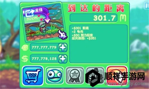 2. 乌龟飞行过程操作空间大,点击触发弹弓加速,沿途道具多样。