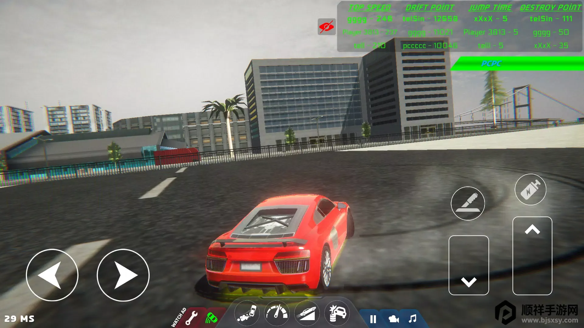 3. 特色排行榜机制:拥有24小时实时排行榜且每日重置,可在漂移竞速停车和破坏挑战等项目中参与角逐,增添竞争乐趣。