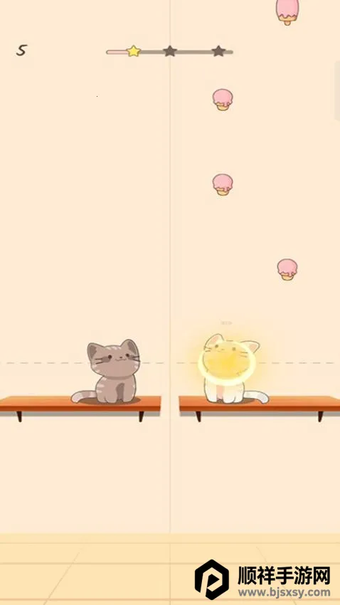 玩法上,进入互动关卡,拖动屏幕调整白猫位置触碰道具开启收集,同步引导灰猫协作完成目标。切换节奏模式,观察下落音符准确点击,兼顾猫咪移动与道具收集。积累星星可解锁厨房休息室等场景与新歌曲,全收集还有特殊动画。
