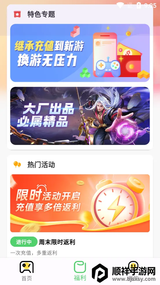 它的特色也不少,有各种精选礼包免费提供,能第一时间获取最新游戏资讯和礼盒。功能丰富,有专属推荐、云游挂机、福利中心、玩家论坛等。亮点是包含上万款游戏资讯,满足不同玩家需求,能在线试玩,还能按类型风格快速找游戏。优势在于会根据你的习惯喜好推荐游戏,游戏都经过安全检测,无病毒木马。而且运行速度快,能管理游戏列表。在这里,你能轻松找到超多福利手游,还有低价充值通道和超值折扣,玩游戏更省钱省心,赶紧下载体验吧!