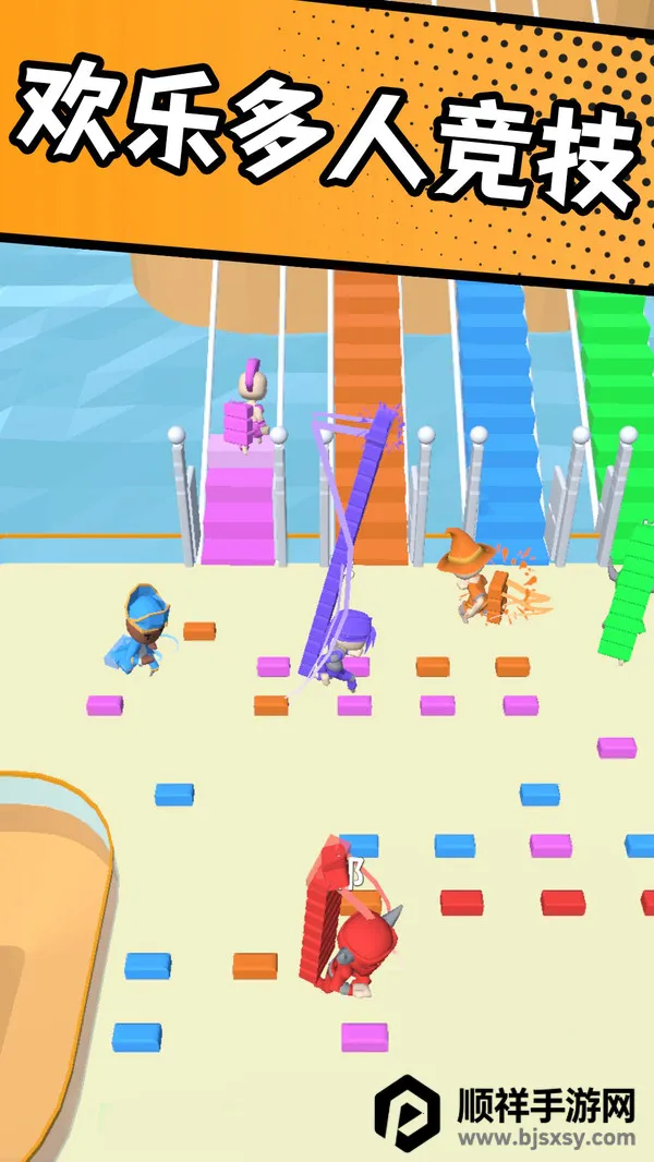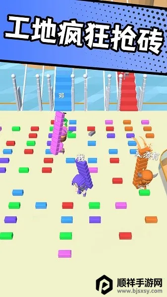 在搬砖争霸赛里,你能体验到独特的欢乐建造竞赛。玩家要快速收集与自身颜色相同的砖块,争分夺秒搭建桥梁,最先完成搭建并抵达终点就能获胜。这里不仅比拼速度,策略规划也很关键。操作超简单,动动手指就能完成收集与搭建,上手毫无压力。支持多人在线实时竞技,能和三名以上玩家同场较量,直接感受竞争的刺激。游戏融入策略干扰元素,可用道具改变砖块颜色或制造障碍,延缓对手进度。还有多样角色与外观可选,收集金币就能解锁。特殊砖块与道具系统丰富,不同主题赛道场景各异,实时排名与成绩记录激励着你不断突破。无论是想轻松休闲一下,还是跟朋友来一场紧张刺激的竞技,搬砖争霸赛都能满足你,快来试试吧!