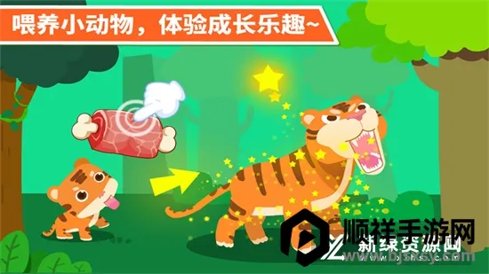 2. 趣味喂养玩耍:每种动物都有专属食谱,孩子需根据动物种类和成长阶段自主选择合适食物,真实还原食性差异。还有符合动物真实特性的趣味互动动作,孩子可使用道具触发不同反应,在笑声中感受动物性格与身体特征。