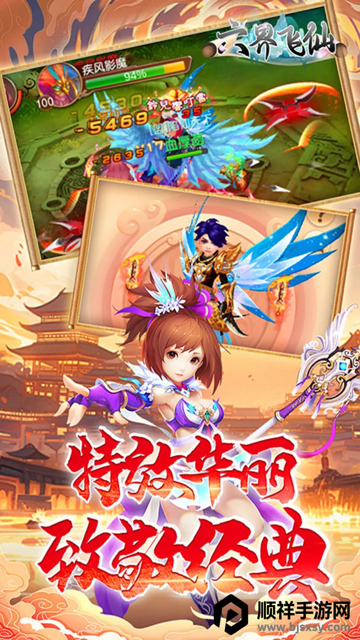 六界飞仙是一款精彩的修仙放置游戏。它以洪荒时期为背景,采用3D美术风格结合顶级特效,带你体验刺激的修仙之旅。游戏中有狂战、飞羽、舞天、魅影四大职业可选,还有上百种可爱仙宠,能附身提升战力、融合升级品质。自带挂机系统,野外刷怪轻松收集神兵利器和时尚外观。此外,可与玩家结情缘。上线送VIP13、无限真充卡礼包等,福利超丰厚,全场充值仅0.1折,能让你尽情享受游戏乐趣,快来下载体验吧!