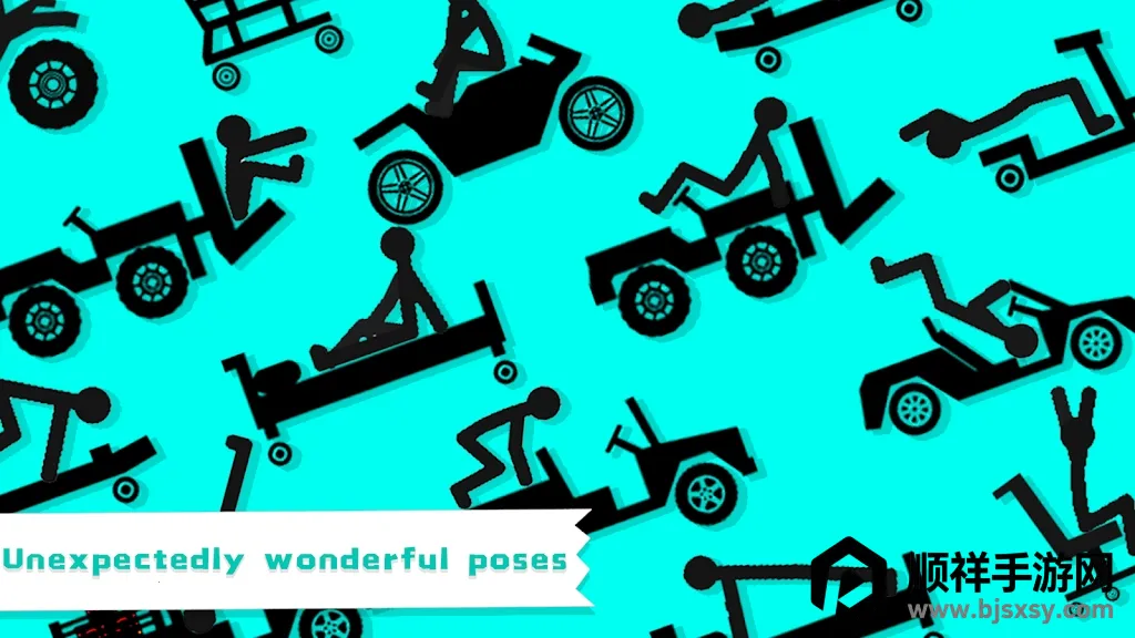 2. 奇葩姿势与载具结合:超多载具配合使用,能打造各种奇葩姿势,让火柴人体验百种不同死法,场面血腥又搞笑。