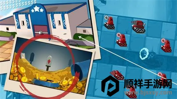3. 美术风格简洁明快,坦克造型独特。战斗反馈爽快直观,击败僵尸即时掉落金币与资源,成长路径清晰。