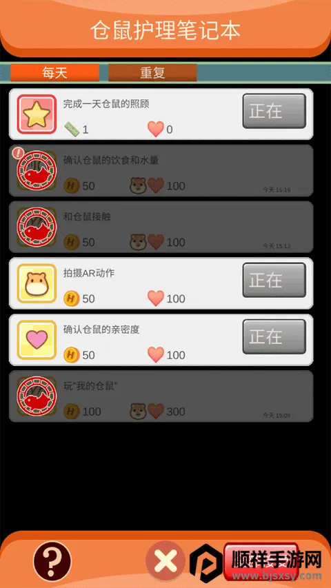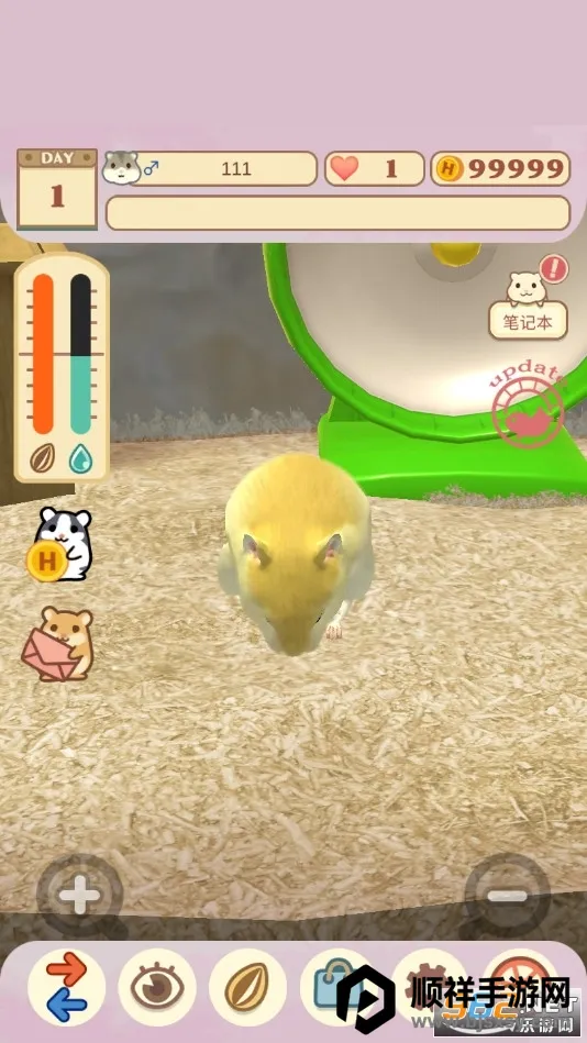 2、每日基础照护不可少:进入笼舍后,第一件事是检查饲料与饮水槽——食物不足会降低饱食度,水源干涸则影响健康值,及时补给是维持仓鼠活力的关键。