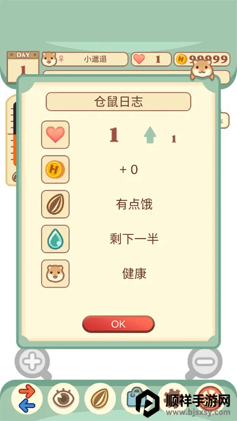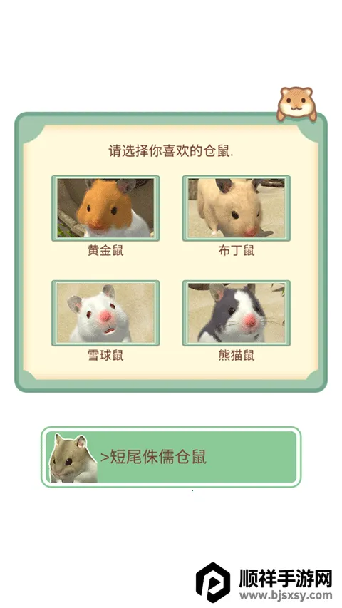 1、开局即开启专属养成之旅:从多款毛色、体型各异的仓鼠中挑选心仪伙伴,自定义性别与名字,赋予它独一无二的身份。