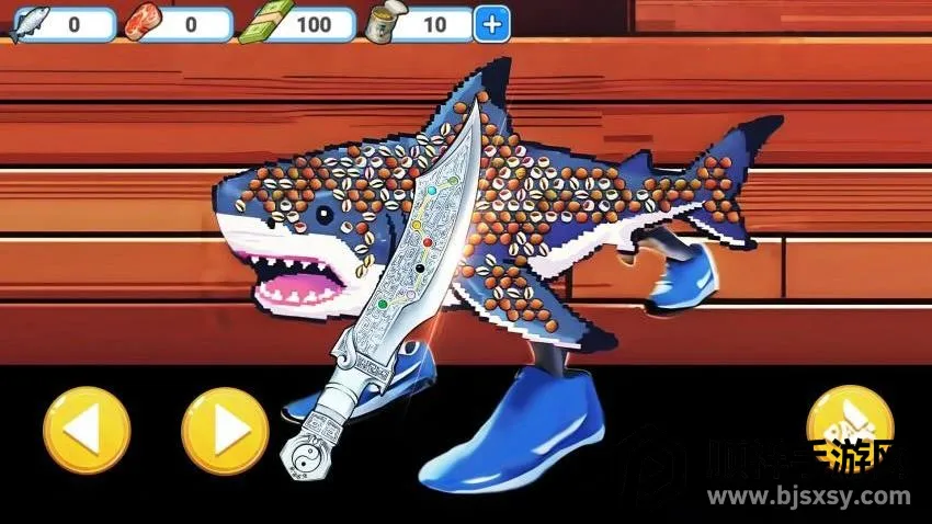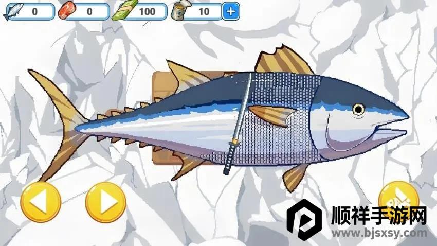 1、如图所示,在游戏界面拿起刀具就可以开始左右移动,可以启动去除鱼鳞