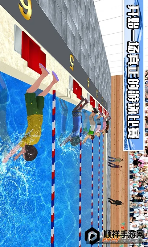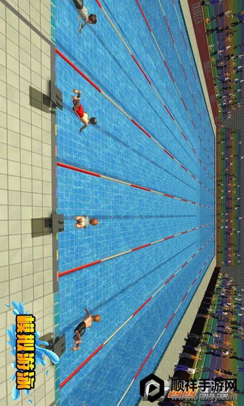 2. 精致3D场景,沉浸感十足:采用高清三维建模,精致的三维场景模拟出人声鼎沸的游泳馆氛围,仿佛让玩家亲临赛场。