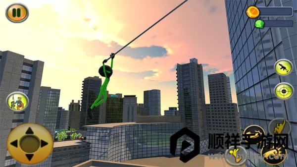 绿火柴人绳索英雄最新手机版是一款动作冒险游戏。玩家扮演绿色火柴人在开放都市穿梭,与邪恶势力对抗,清除犯罪组织守护平民。有多样挑战模式,能自由选武器,发挥技能,体验精彩刺激的角色扮演乐趣。