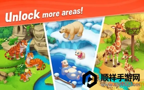拥有多样趣味玩法,能养育可爱动物、解码图形谜题、完成三消关卡,还可解锁新区域,迎接不同栖息环境的动物。