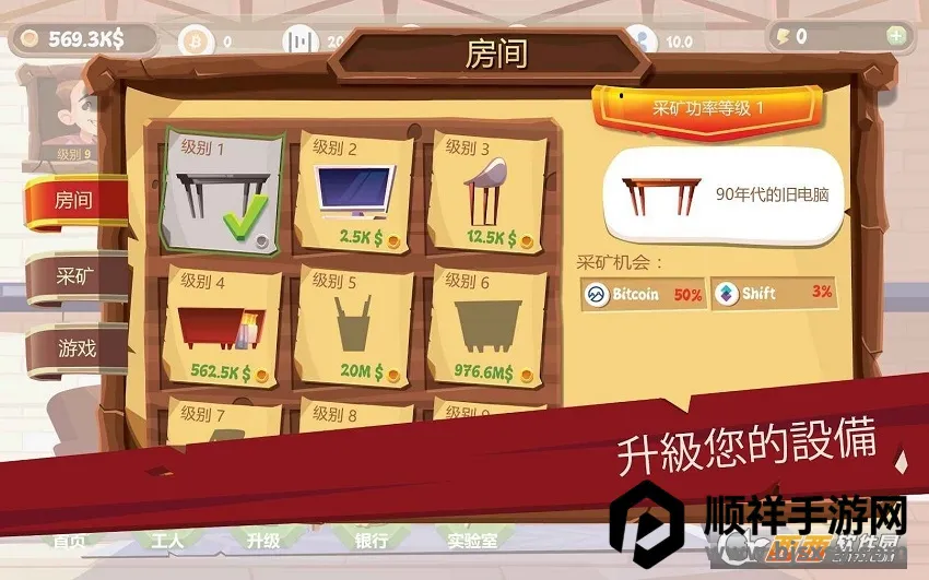 3. 可解锁多种先进采矿设备,完善全流程流水线,升级相关效率与容量,提升采矿速度和收益。