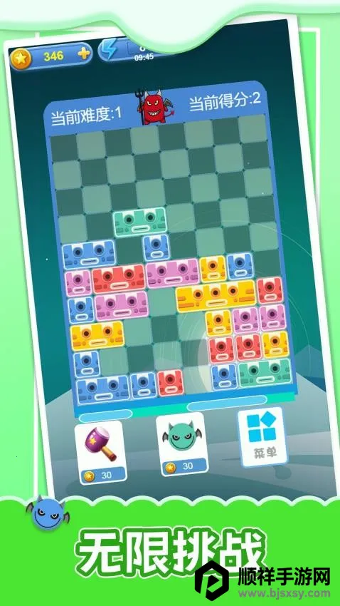 这款休闲方块消除手游很有意思。游戏里的方块可爱,大小颜色各异。玩家要查看下方将出现的方块及位置信息,选最佳移动方式让方块有被消除可能。挑战有趣,还有更多新奇难度。操作轻松,新手易上手。画风五彩缤纷,能呈现美丽卡通画面。拖动方块时要关注布局确定方向,仔细观察才能发现易消除方块。消除多个方块能得分,达到挑战水平可获金币奖励。总之,是一款值得一玩的手游。