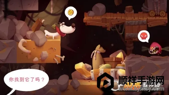2、在关卡中会出现许多有缝隙的地方,小狗一不注意就会掉下去,但是细心的玩家就会发现游戏中那些场景道具其实是可以移动的。玩家可以将道具推到合适的缝隙处填补缝隙,减少掉下去的几率。