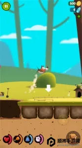 4、游戏中玩家可以让小狗跳跃到台子上,但是一定要把握好距离,不能冲的太远或者在还没到达的地方就松开了按方向键的手。如下去,不管是飞的太远或太近都会对游戏结果造成影响。