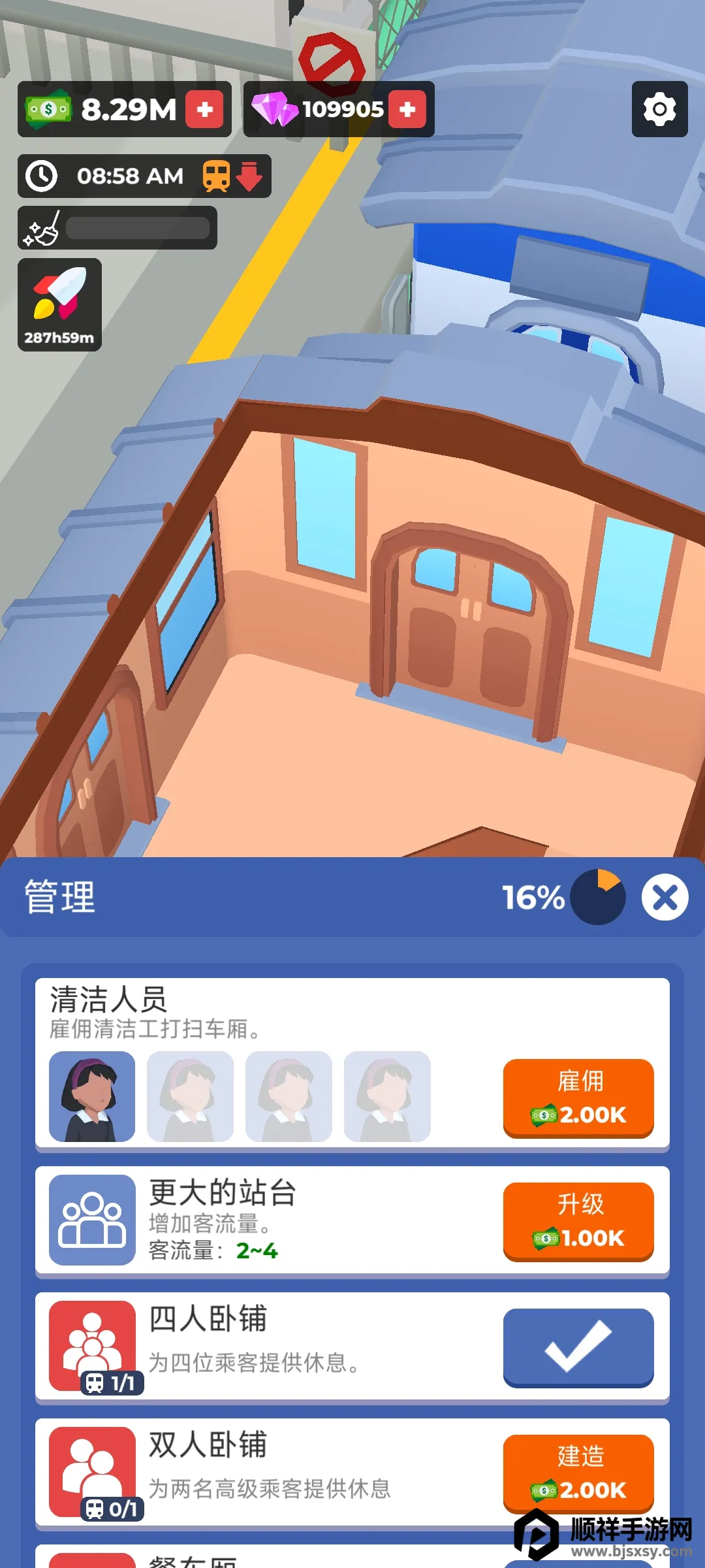 想体验独特的经营乐趣吗?来试试火车酒店经营游戏吧!在这里,你将经营一家别具风格的火车酒店。火车不断沿着轨道行驶,每到一站就会迎来新客人。客人在酒店里享受美食、舒适休息、欣赏沿途美景,这些举动都能为你带来收益。有了收益,就能全方位升级火车酒店啦,比如增添更豪华的客房设施,丰富餐饮种类,优化观景区域等。这不仅能吸引更多客人,还能让收益滚滚而来。整个过程充满趣味与挑战,让你沉浸其中。你可以尽情发挥经营才能,打造出超棒的火车酒店,满足客人需求的同时收获满满的成就感,开启一段独一无二的火车酒店经营之旅,感受别样的精彩。