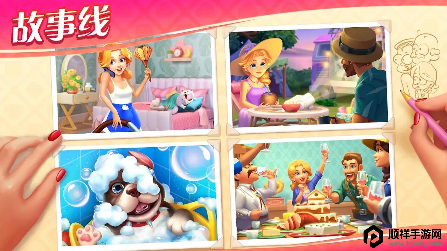 玩法丰富:融合了消除、养成、建造元素,还有Q版欧美风,故事丰富玩法多样。
