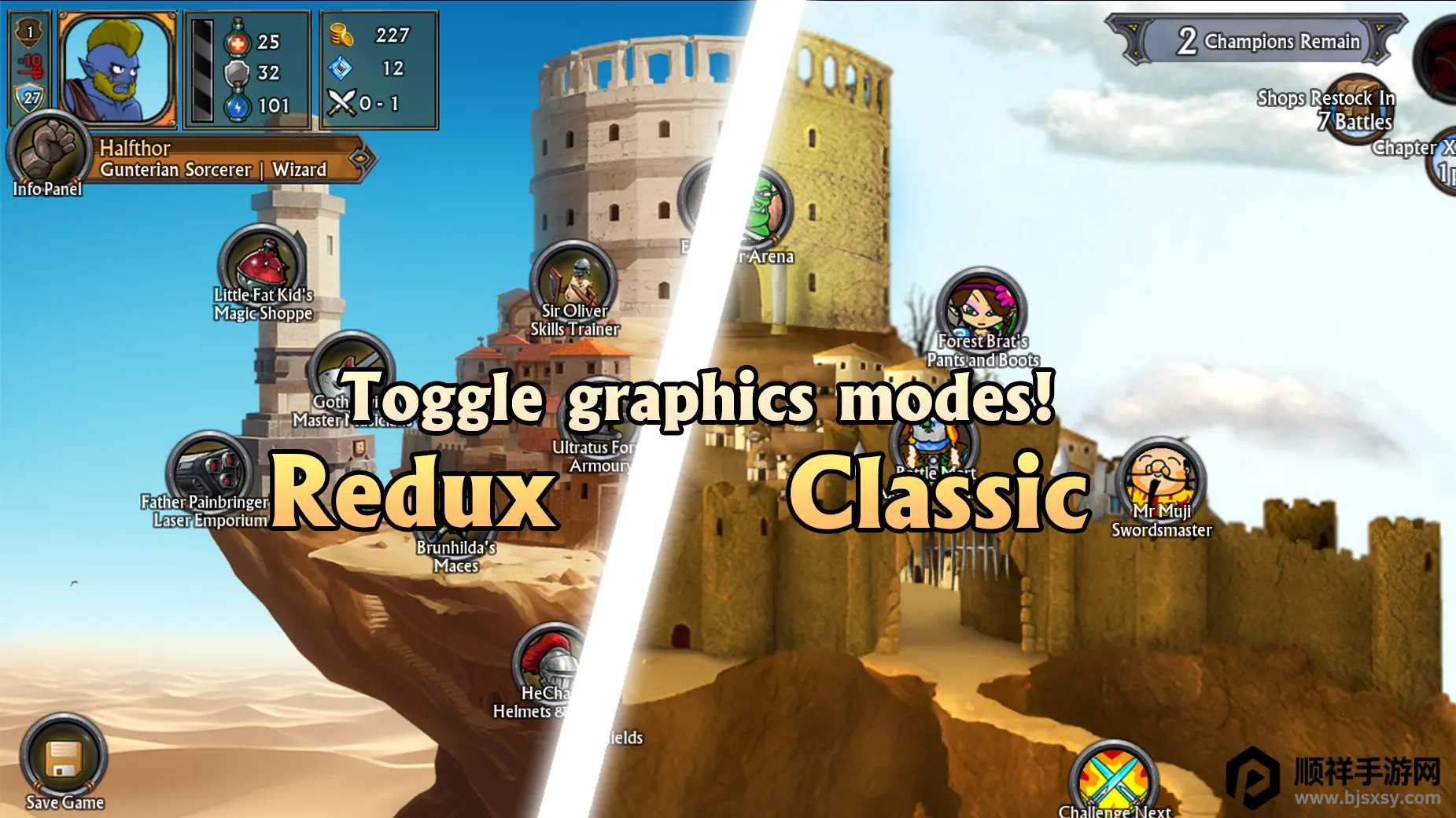 剑与凉鞋3最新手机版距最初发售近二十年终于重制。有快节奏回合制战斗、全新画面配乐、残酷死亡场景。可切换画面,自定义角斗士,挑战冠军,多种职业可选,还有自动机械构造体,玩法丰富。