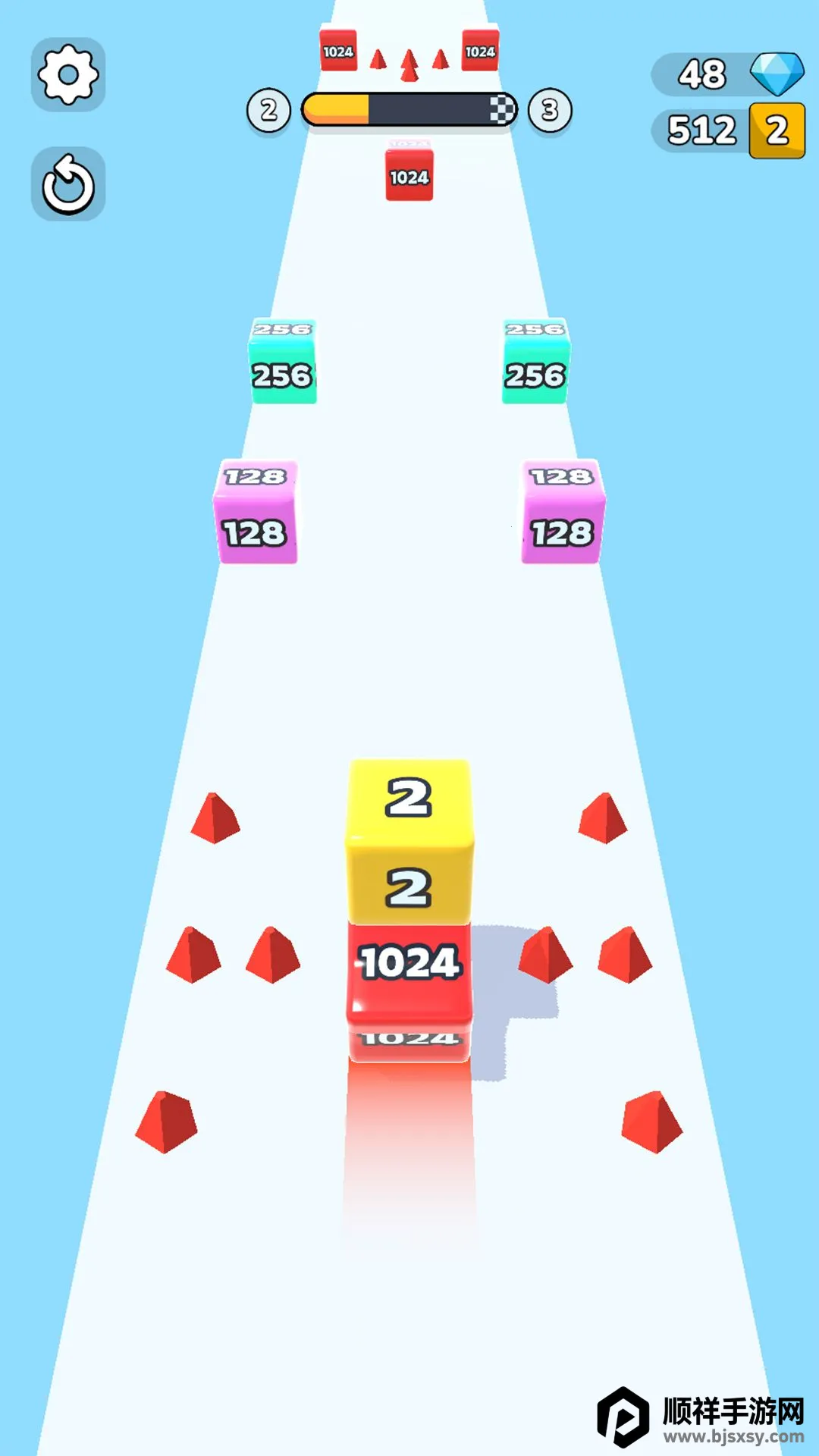 这是一款融合了2048合成玩法与跑酷元素的冒险闯关游戏。游戏采用Q版卡通画风,多个关卡可供选择,能带来沉浸式闯关体验。玩家点击屏幕使方块分开或合并,相同数字融合成更高数字,还能利用跑酷道具躲避障碍,用方块建造拓展玩法。操作简单,老少皆宜。其亮点在于点击操作方便,合成与跑酷玩法趣味解压,道具和方块随机生成充满惊喜。按照攻略规划合成路径、合理使用道具、保持冷静应对,就能享受这场精彩冒险。快来下载开启冒险之旅吧!