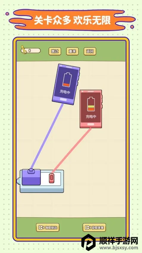 想体验独特的游戏乐趣吗?有一款游戏值得尝试。它有着轻松的游戏模式,能让玩家快速上手操作。在闯关过程中,有诸多精彩之处。比如要找到连接优势,关注手机不同充电方式对应的插孔形状大小。面对难题挑战,在难度大的关卡中找正确充电解决方式。而且能无限闯关,收获相应状况得更好解谜机会。游戏内容丰富,有各种充电解谜关卡,不同颜色充电器需找合适连接方式。亮点是能获闯关道具,遇麻烦可用提示或重置关卡。按照玩法攻略,在安卓设备下载安装,开启智救之旅,规划连线策略,精准连接线路与插座,感受其中魅力。