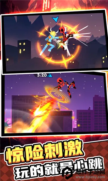 这款融合火柴人与漫威英雄元素的游戏,带来全新混合格斗动作玩法。采用全新升级游戏引擎,技能特效酷炫,对决激情满满还能缓解压力。游戏亮点众多,有紧张刺激的对决玩法,滑稽橡胶人角色欢乐对战。手机版特色丰富,技能组合可自由搭配,大量战斗任务待参与,操作体验流畅,能展现炫酷格斗连招。还有福利转盘,暗黑系画风炫酷。在这游戏中,你将操控火柴人不断战斗,解锁炫酷皮肤,体验全新乐趣与玩法,成为宇宙最强王者,快来下载畅玩吧!