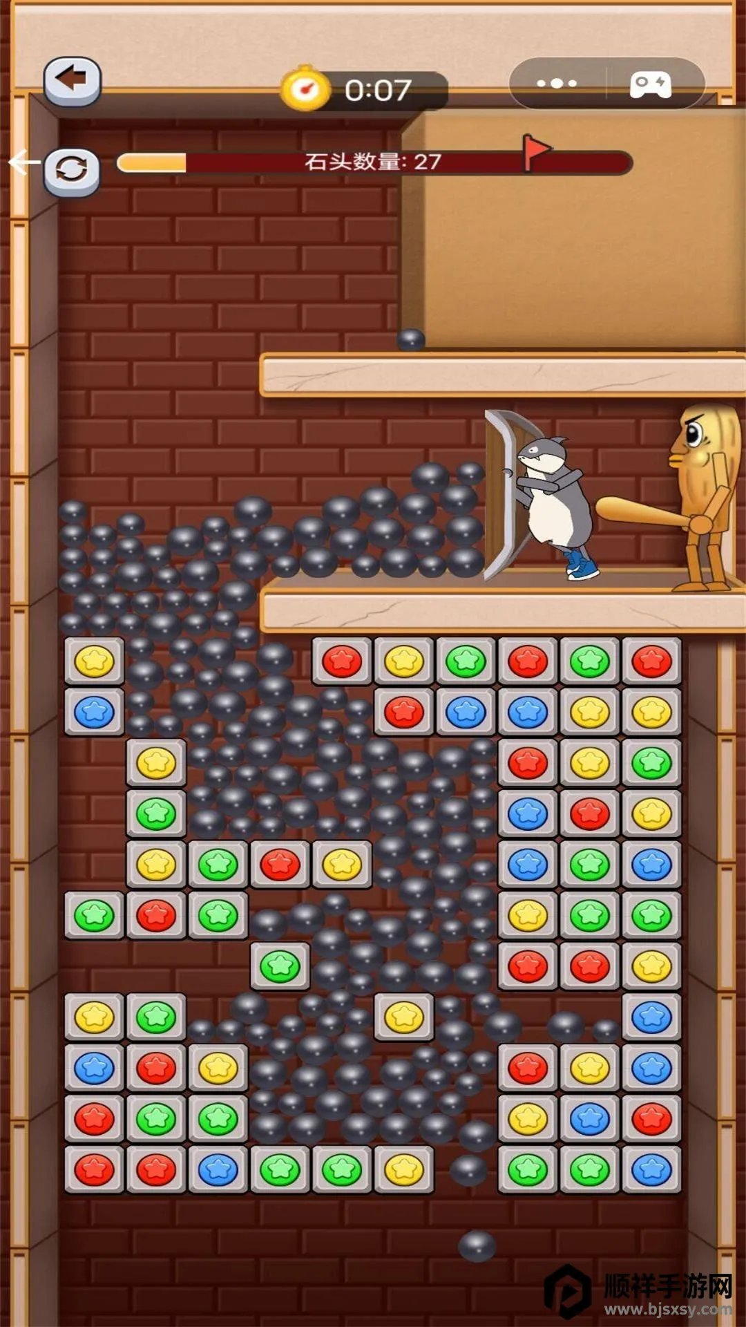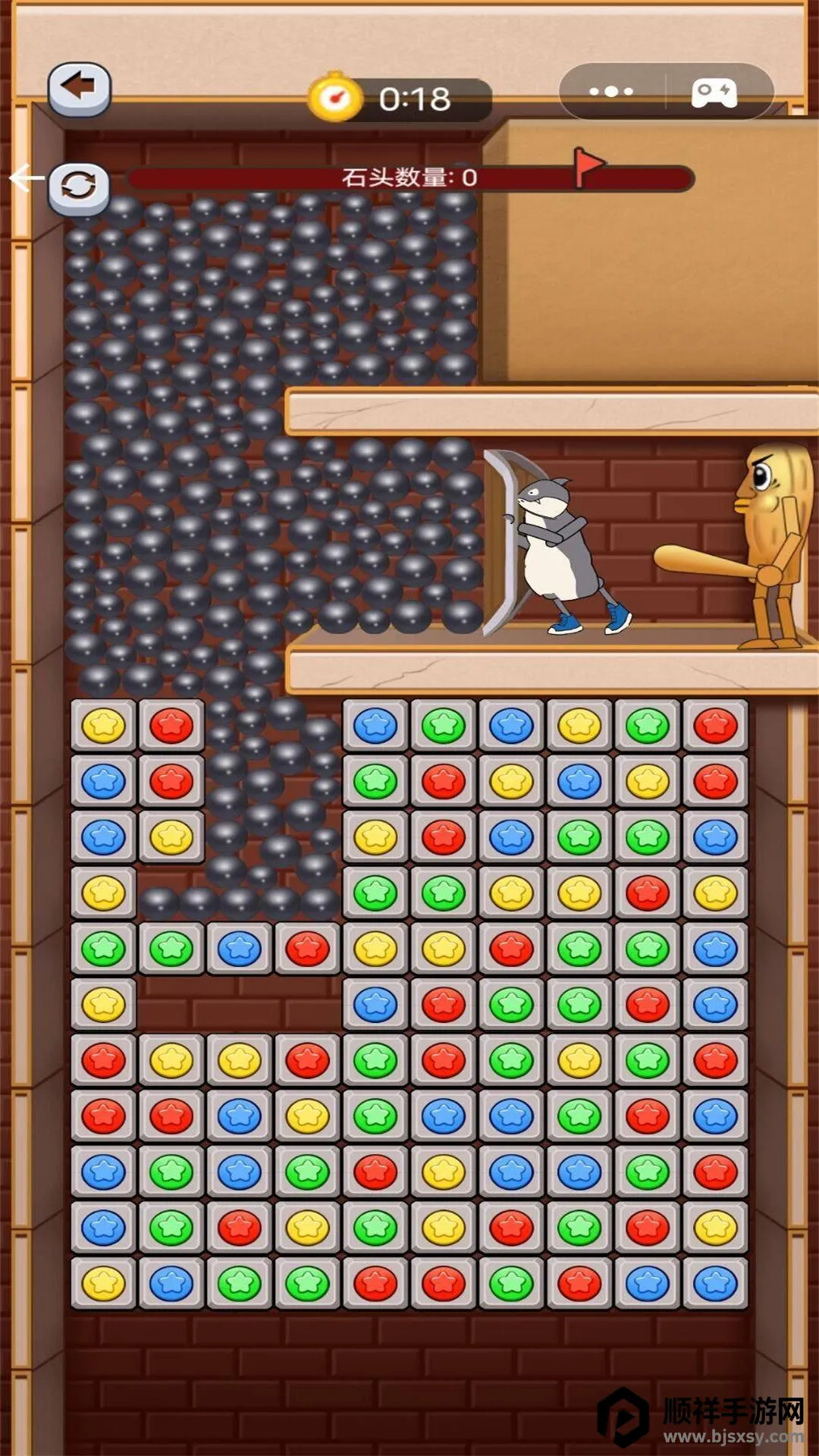 1. 独特的救援目标:在限定时间内消除星星,促使石头下落拯救被困的鲨鱼与木棍人,告别传统分数模式,增强代入感。